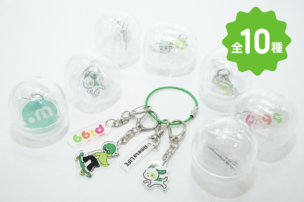ガチャの中にはAmebaLIFEの事業にちなんだ全10種類のアクキーが!
